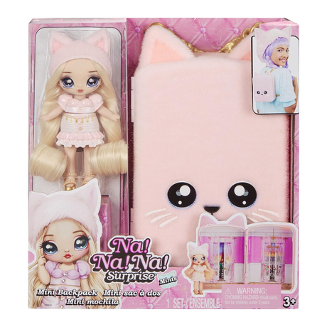 Na! Na! Na! Surprise Mini Backpack Amelie Laurent Fashion Doll, Fuzzy Pink Kitty Backpack