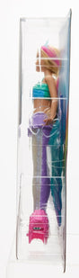 - Barbie doll's fantasy look is complete with rainbow fins, a "pearl"-detailed bodice, pink-streaked hair and a princess tiara.