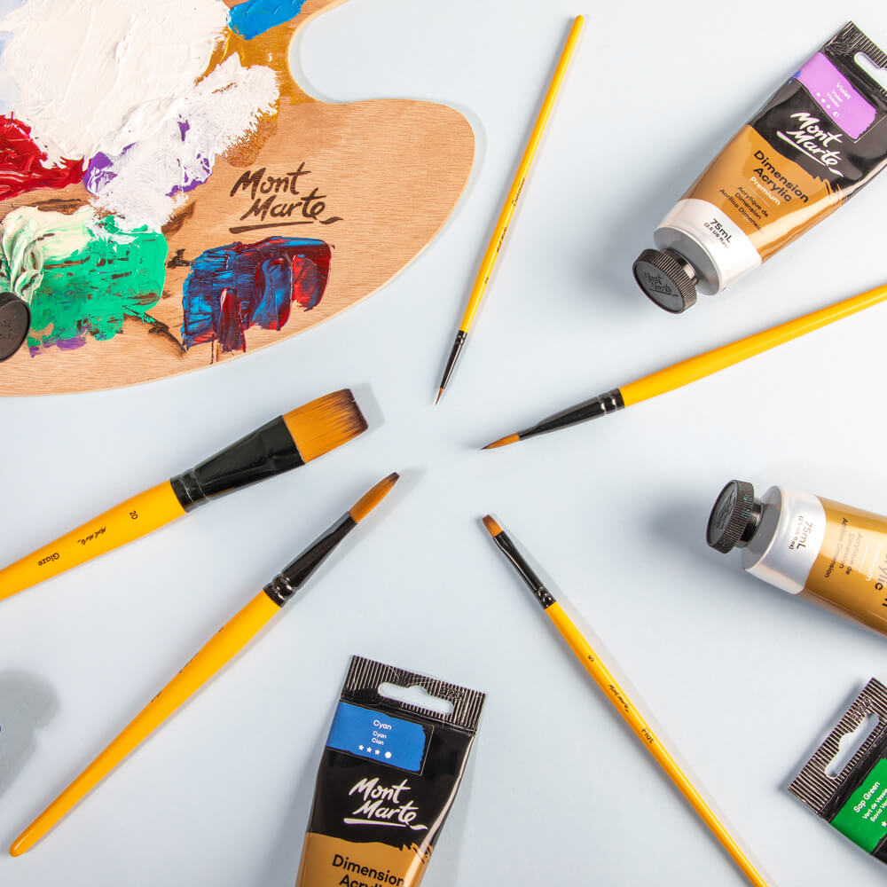 Unleash your inner masterpiece with this dynamic duo: professional-grade Mont Marte acrylic brushes and sleek design!