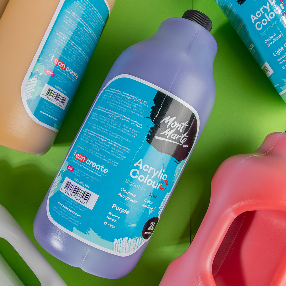 Unleash Your Inner Amethyst with Mont Marte's Acrylic Colour Paint Signature - Purple (2L)!