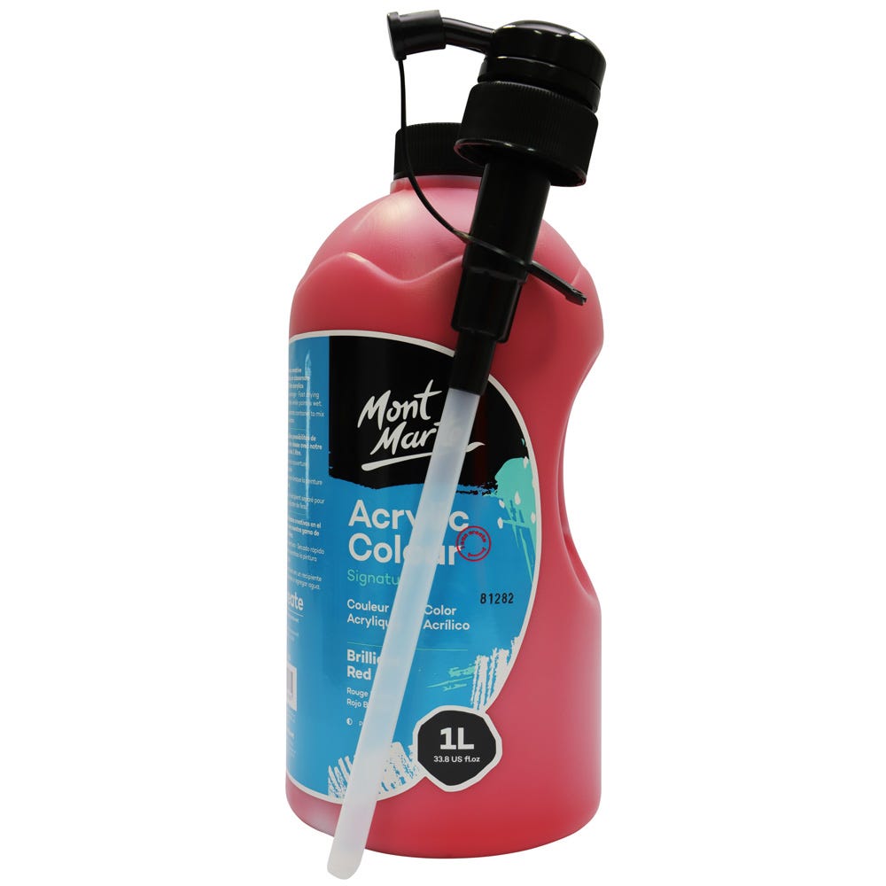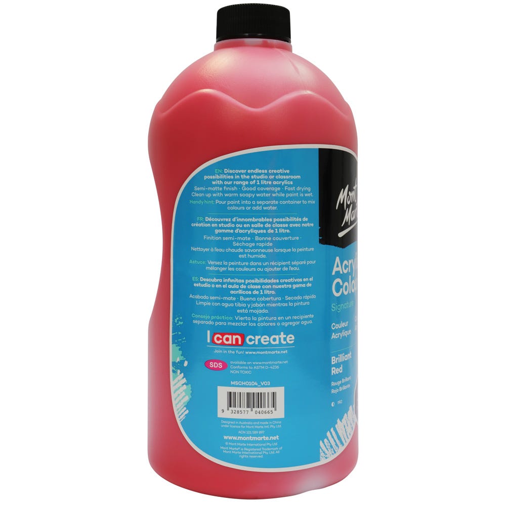 Mont Marte Acrylic Colour Signature 1L (33.8 Us Fl.Oz) Bottle - Brilliant Red