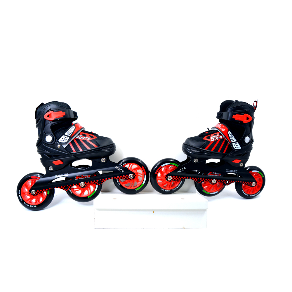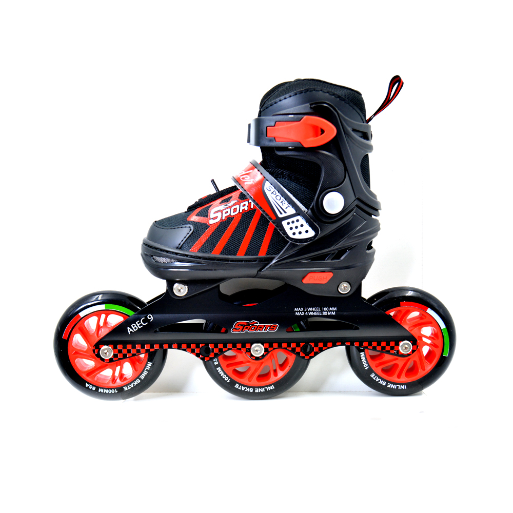 - The Adjustable Inline Skates set features flashing wheels and an adjustable size for both indoor and outdoor use. Available in pink, red, and blue, these skates come in three sizes (L, M, S) to fit children of all ages and genders. Get ready to glide and roll your way to fun and excitement with these vibrant and versatile skates!