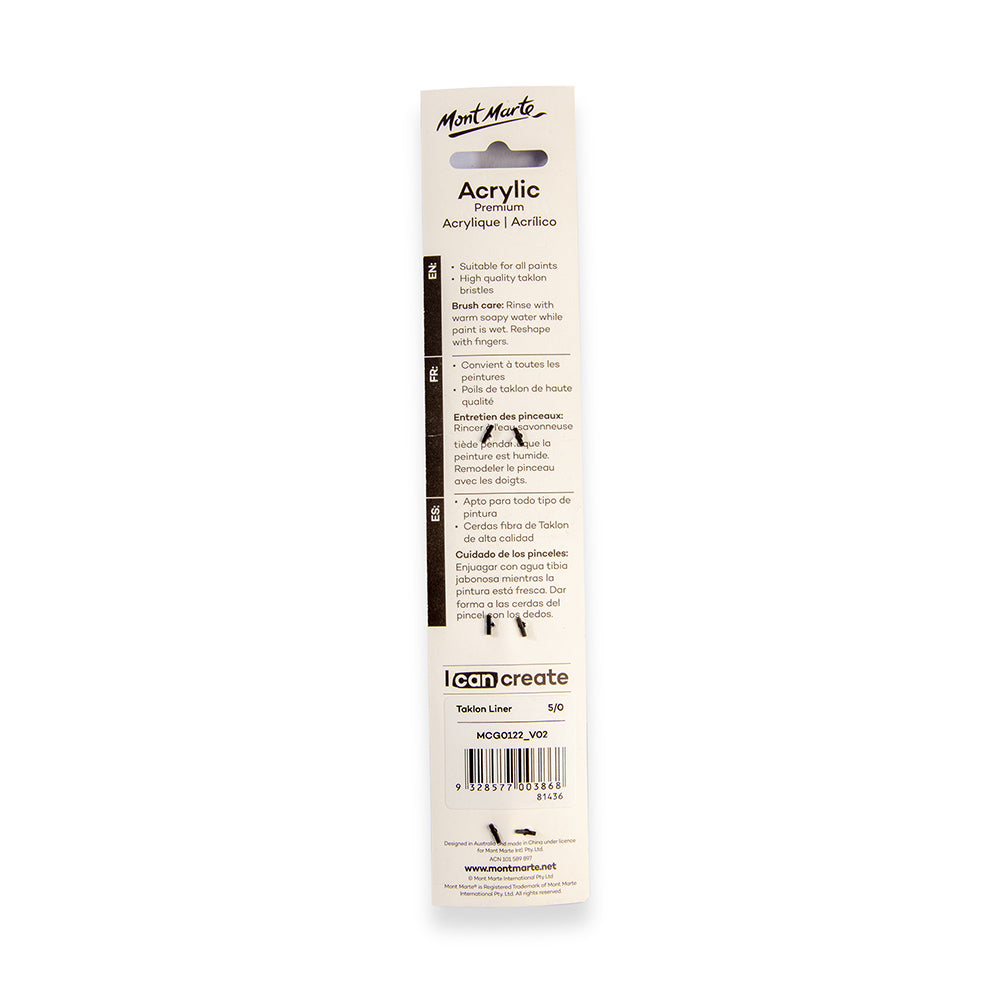 Mont Marte Artist Brush Taklon Liner 5/0 is backordered and will ship as soon as it is back in stock.