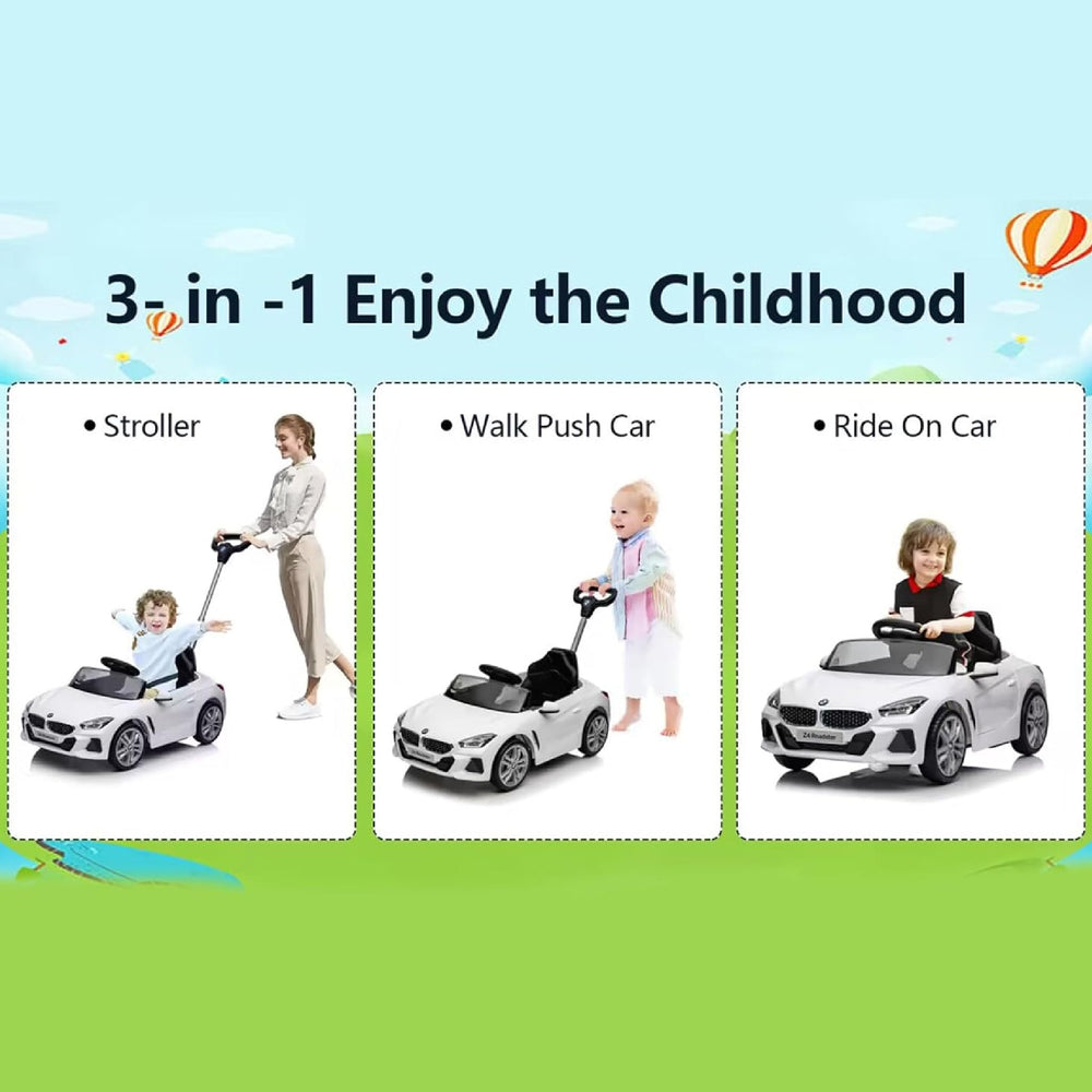 - With cool and stylish look, built-in music and a horn button (2 x 1.5V AA batteries required, not included), ultimate kids push car features the realistic design of the BMW Z4 car for toddler!
