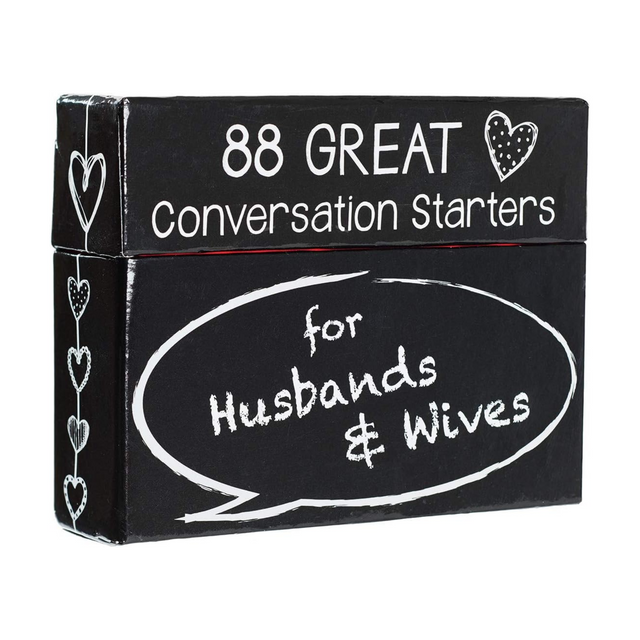 - WEDDING PRESENT, ANNIVERSARY GIFT: This Conversation Starter Kit makes the perfect anniversary and wedding gift for the couple. Wish them the best for the married life through this card deck box. Can also be a nice bridal shower gift, anniversary gift, or marriage gift. Having a tough time communicating with your husband or wife? Lighten up the room with an easy and fun way to start communication deeper, and with less stress. Conversation starters for husbands & wives is perfect!