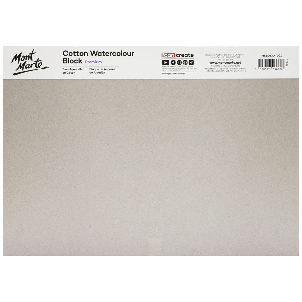 Mont Marte Cotton Watercolour Paper Block Premium 300Gsm A3 (16.5 X 11.7In) 12 Sheet
