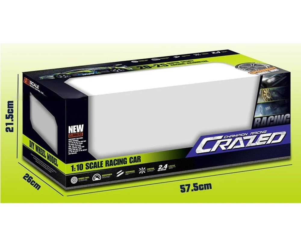 Take racing to the next level with the Crazed Champion Racer Car, a 1/10 scale remote control car that features a 2.4GHz frequency for smooth, uninterrupted racing. This high-performance car is designed for speed and agility, with precision steering and shock-absorbing tires that allow it to navigate both rough terrain and smooth tracks. The sleek design and durable construction make it a great choice for both competitive racers and hobbyists, offering a thrilling racing experience.