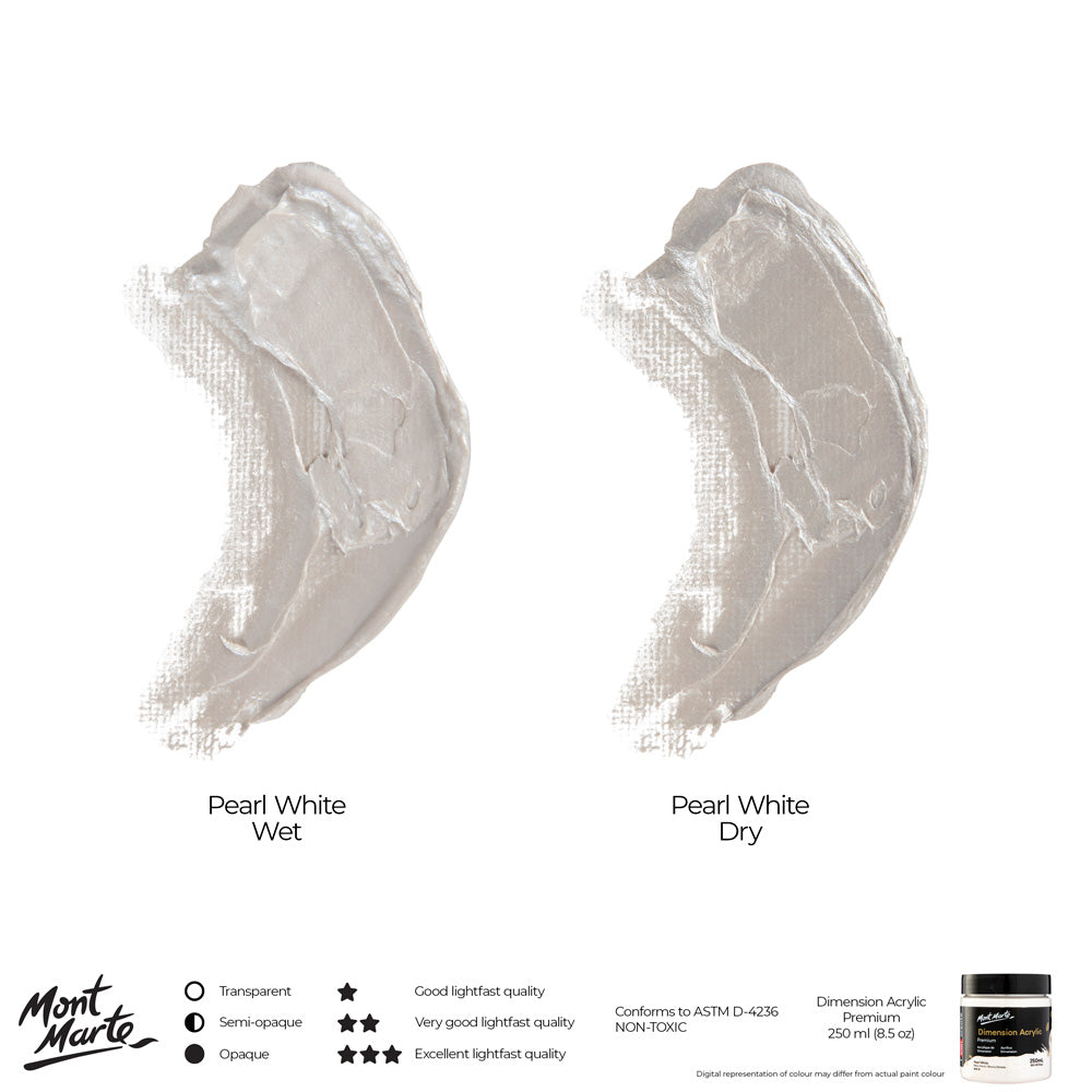 Mont Marte Dimension Acrylic Premium 250ml - Pearl White is backordered and will ship as soon as it is back in stock.