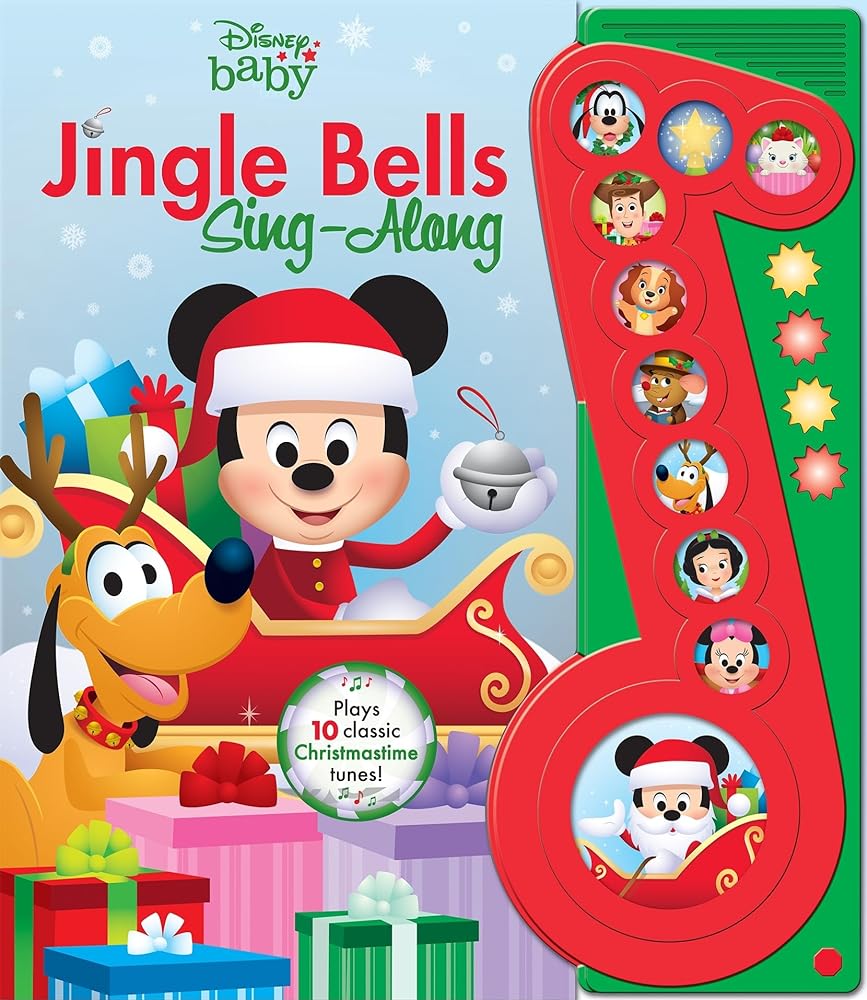 Celebrate and sing with Santa Mickey, Pluto the Reindeer, and more Disney Baby friends! 10 buttons play classic Christmas songs like "Deck the Halls" and "Jingle Bells," while stars light up and twinkle as the music plays. Lyrics are printed in the book for sing-along fun. Music and singing help build language and literacy skills, and make story time - and the season - extra special!