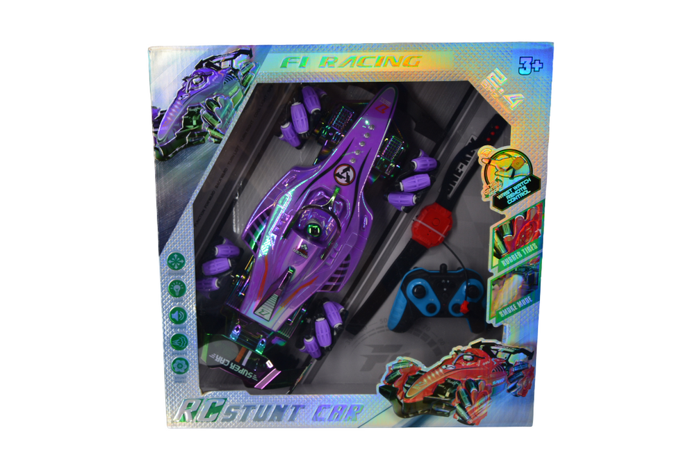 Control with just a wave! This F1 RC car features gesture control, LED lights, 360° stunts, and cool spray effects.
