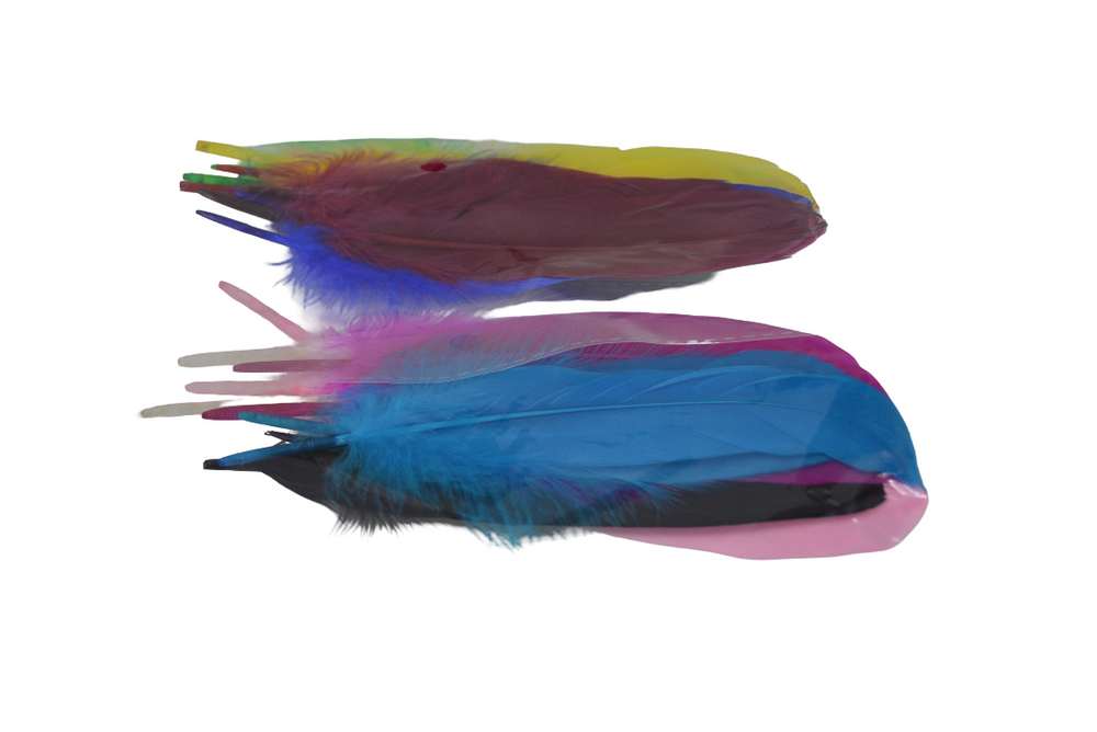 Set of colorful feathers ideal for arts, crafts, costume making, and school projects.