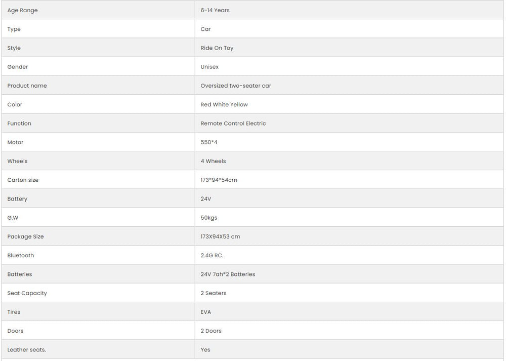 When you can have two, why settle with just one? Our ride on car 2-seater Oversized design encourages the joy of sharing and connection, making it ideal for friends and siblings.