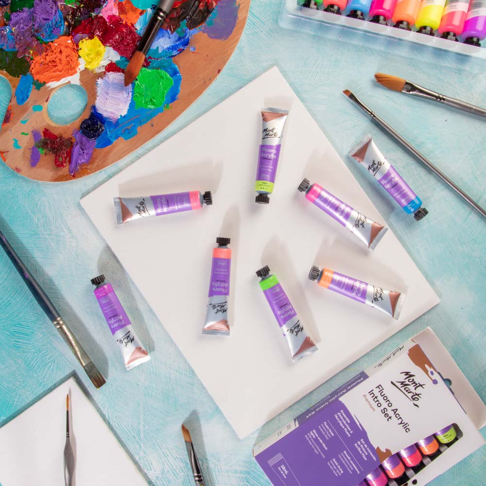 Add the Mont Marte Fluoro Acrylic Intro Set to your cart now and paint your way into a world of breathtaking luminescence!