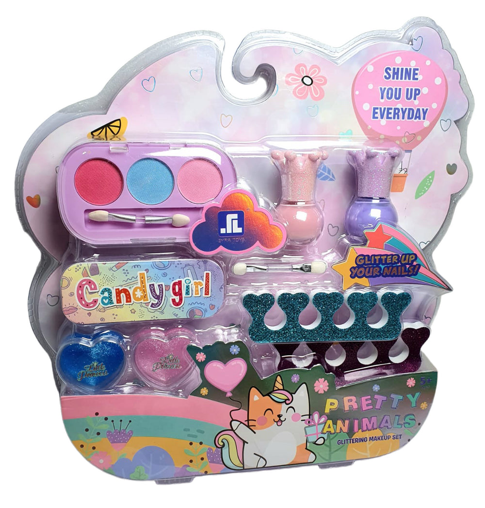The Glitter Makeup Set for kids features a dazzling selection of glittery beauty products, including sparkly lip glosses, eye shadows, and blushes. With its vibrant colors and glittery finish, this set is perfect for children who enjoy experimenting with different looks and adding a little sparkle to their playtime. Safe and non-toxic for hours of beauty fun.