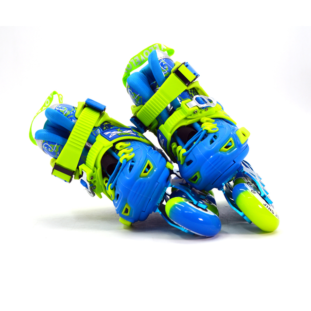- The Adjustable Inline Skates set features flashing wheels and an adjustable size for both indoor and outdoor use. Available in pink, red, and blue, these skates come in three sizes (L, M, S) to fit children of all ages and genders. Get ready to glide and roll your way to fun and excitement with these vibrant and versatile skates!