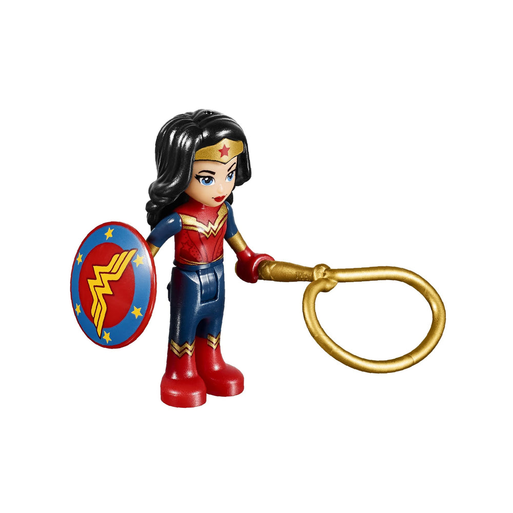 Features a foldout palace, opening tubes to hold LEGO DC Super Hero Girls characters, powering station, planning room, vanity cabinet, weapons cabinet, a Kryptomite creation section