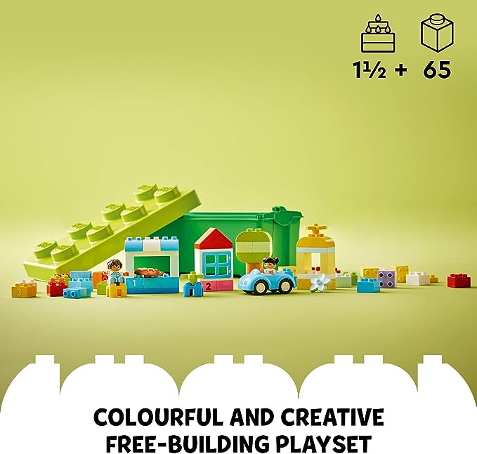 Endless Builds - Includes 65 LEGO DUPLO bricks plus familiar pieces to stimulate toddlers’ minds, including a toy car with moving wheels, windows, and flowers. Also includes 2 figures, 1-2-3 number-learning bricks, plus extra building ideas in the box.