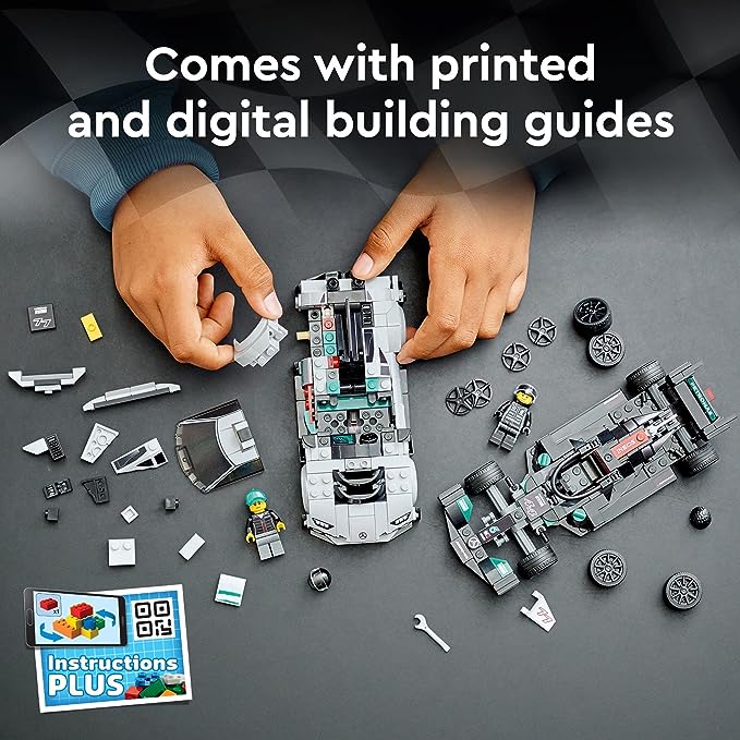 Two LEGO car model kits - build and recreate the Mercedes-AMG F1 W12 E Performance and Mercedes-AMG Project One race cars