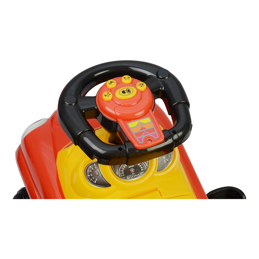 - REALISTIC CAR SOUNDS: Engages kids with colorful design, cute decals, working steering wheel, music, and realistic horn sounds
