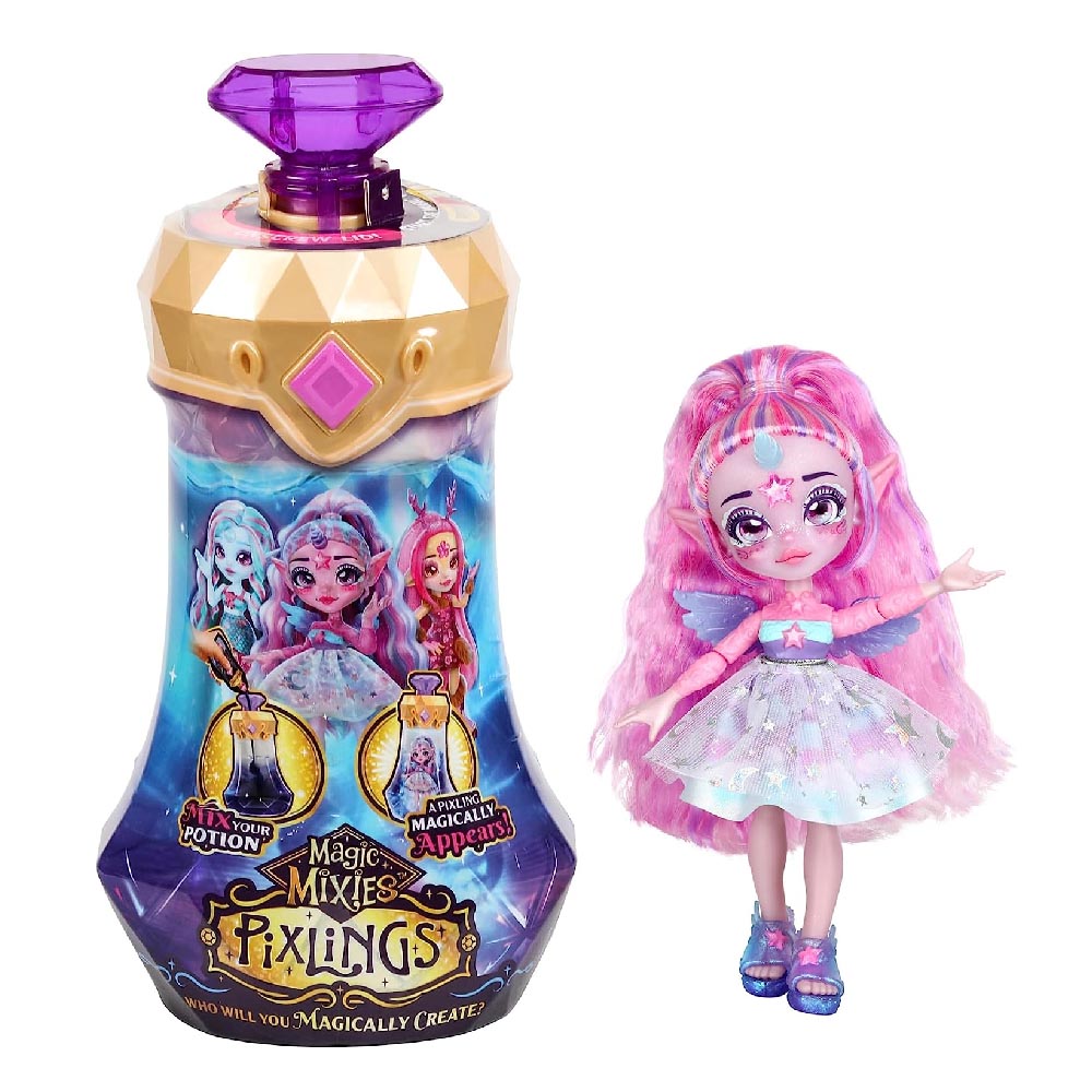 Say the magic words "MAGICUS MIXUS" and prepare to witness real magic! Before your eyes the blue potion will turn clear, magically revealing a Pixling inside the bottle!