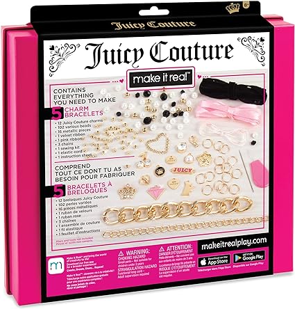 Make It Real: Juicy Coture Chains & Charms, DIY Bracelet Kit, Includes 12 Juicy Coture Charms, Makes Up to 5 Bracelets, Helps Young Girls Develop Fine Motor & Visual Skills, for Ages 8 and up