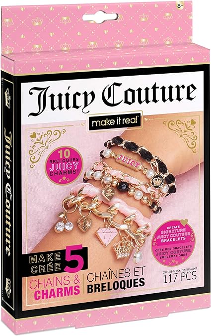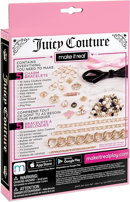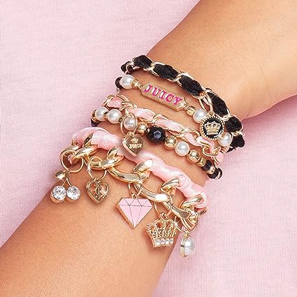 EASY TO MAKE, FUN TO WEAR: Making stylish Juicy Couture bracelets is simple with this DIY girls jewelry making kit! This set has everything girls need to get creative and make up to 5 stylish charm bracelets they’ll be proud to show off!