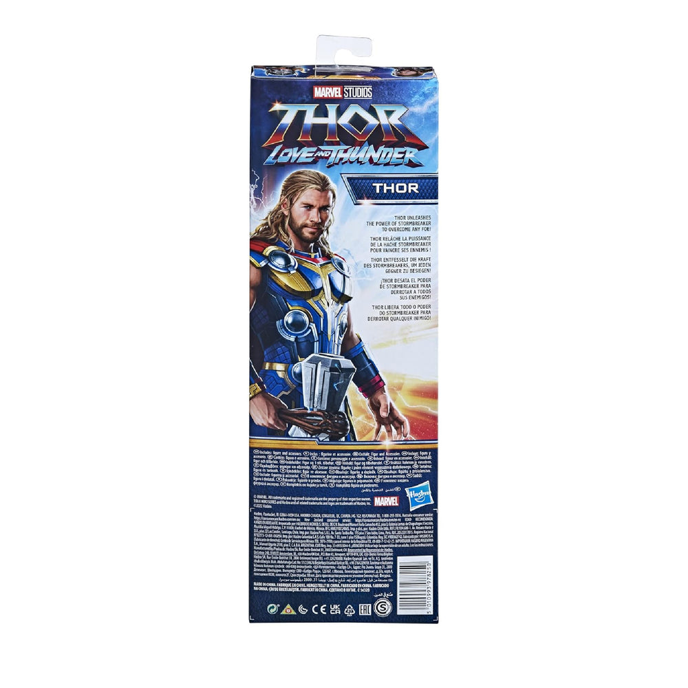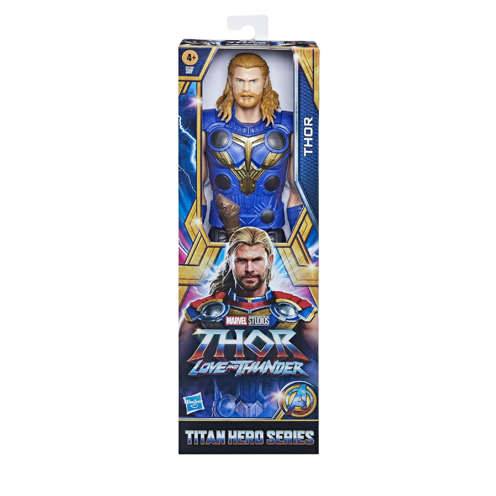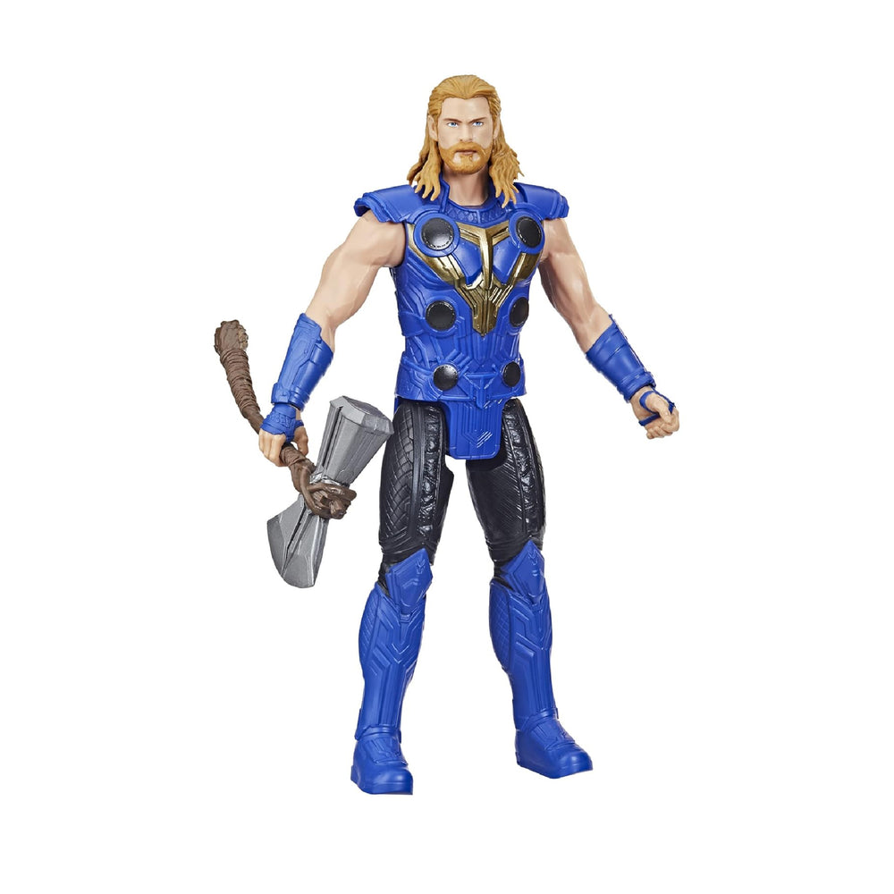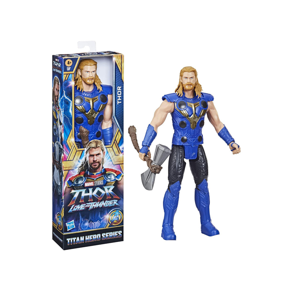 Thor unleashes the power of Stormbreaker to overcome any foe! Unleash the power of the Marvel Universe with the Marvel Avengers Titan Hero Series Thor: Love and Thunder Thor action figure! Children aged 4 and up can imagine mighty action and adventure with this 30-cm-scale action figure, inspired by Thor: Love and Thunder, part of the Marvel Cinematic Universe. Featuring film-inspired design and detail, as well as multiple points of articulation for posable fun, boys and girls will love pretending to defend the universe with this large-scale Thor toy!