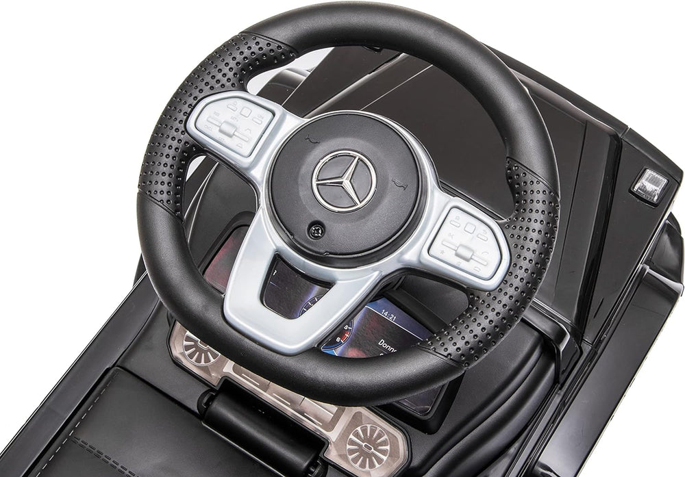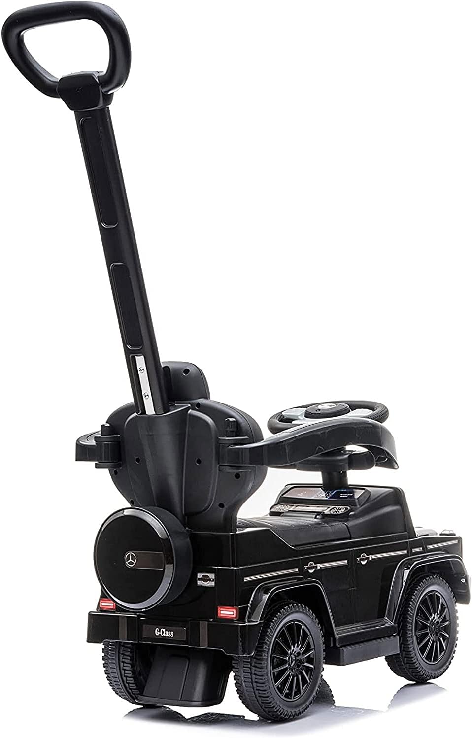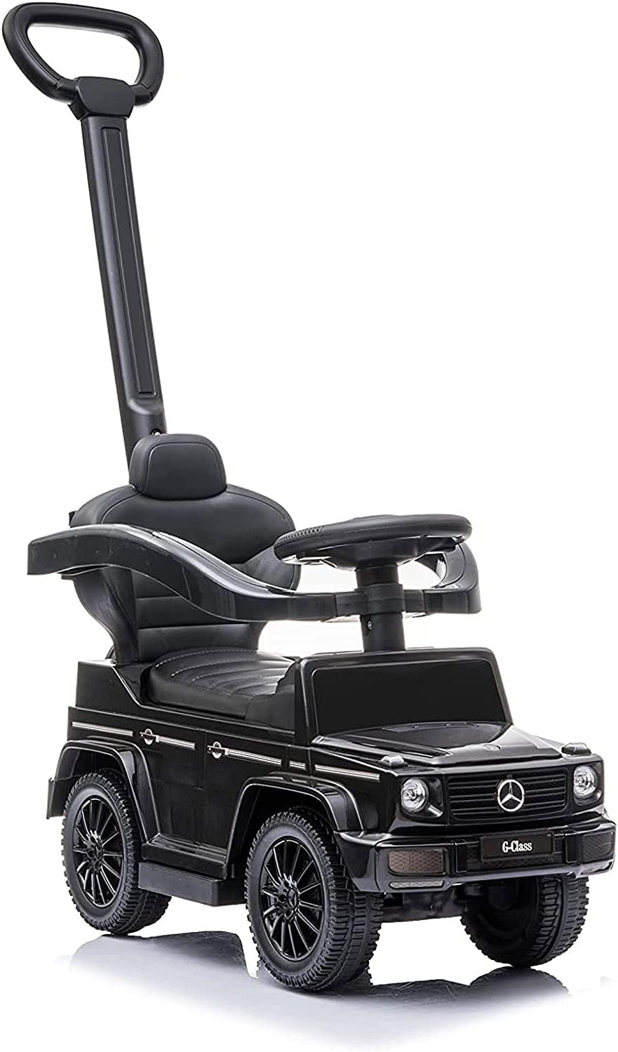 - Exclusive Foot-to-Floor Design – This premium Mercedes G-Wagon Push car design offers a versatile combination of a Ride on car and walker. This exclusive car allows toddlers to ride themselves or use it as a push toy with a kid-sized push bar