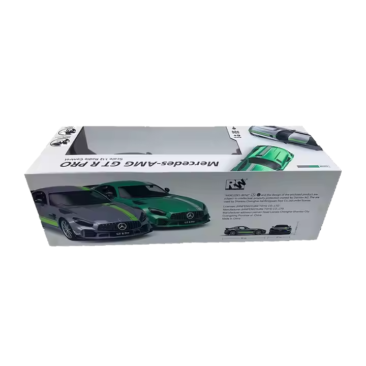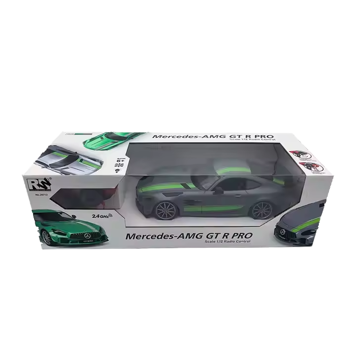The Mercedes AMG GT R Pro 1:12 scale remote control car is a stunning, high-performance RC car that captures the sleek and powerful design of the iconic Mercedes sports car. Featuring detailed exterior design, working lights, and advanced 2.4GHz remote control technology, this car offers fast and responsive handling. Available in two stylish designs, it is perfect for racing enthusiasts and collectors who appreciate both performance and aesthetics.
