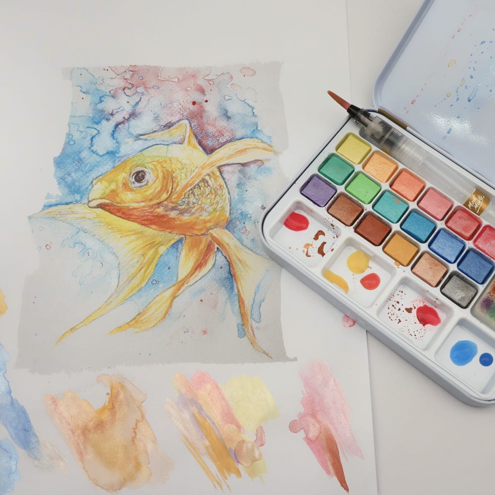 - Travel-ready studio: Your creativity knows no bounds! This portable metal tin holds everything you need – paints, sponge, palette, and water brush – for on-the-go artistic adventures.