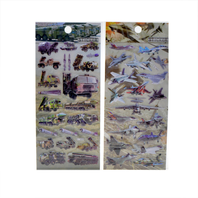 A set of small military vehicle stickers perfect for young fans of military equipment. Great for scrapbooking, crafts, and more.