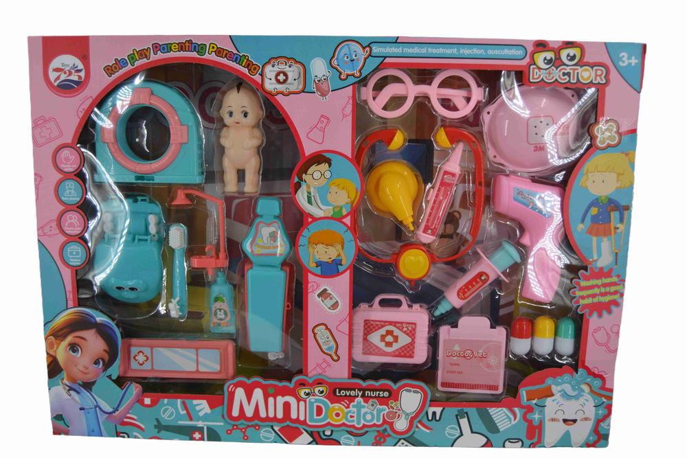 Everything a little doctor needs! This mini medical play set includes stethoscope, syringe, and tools for fun pretend check-ups.