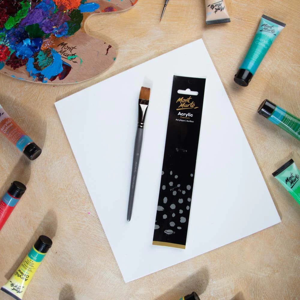 Mont Marte Acrylic Brush Premium Taklon Bright Short 16 is used for broad, flat areas of color, an ideal background brush. Soft, synthetic bristles provide neat, controlled strokes when shading larger areas. Can also be used on its end for finer lines. Unleash your creativity with the Mont Marte Acrylic Brush Premium Taklon Bright Short 16!