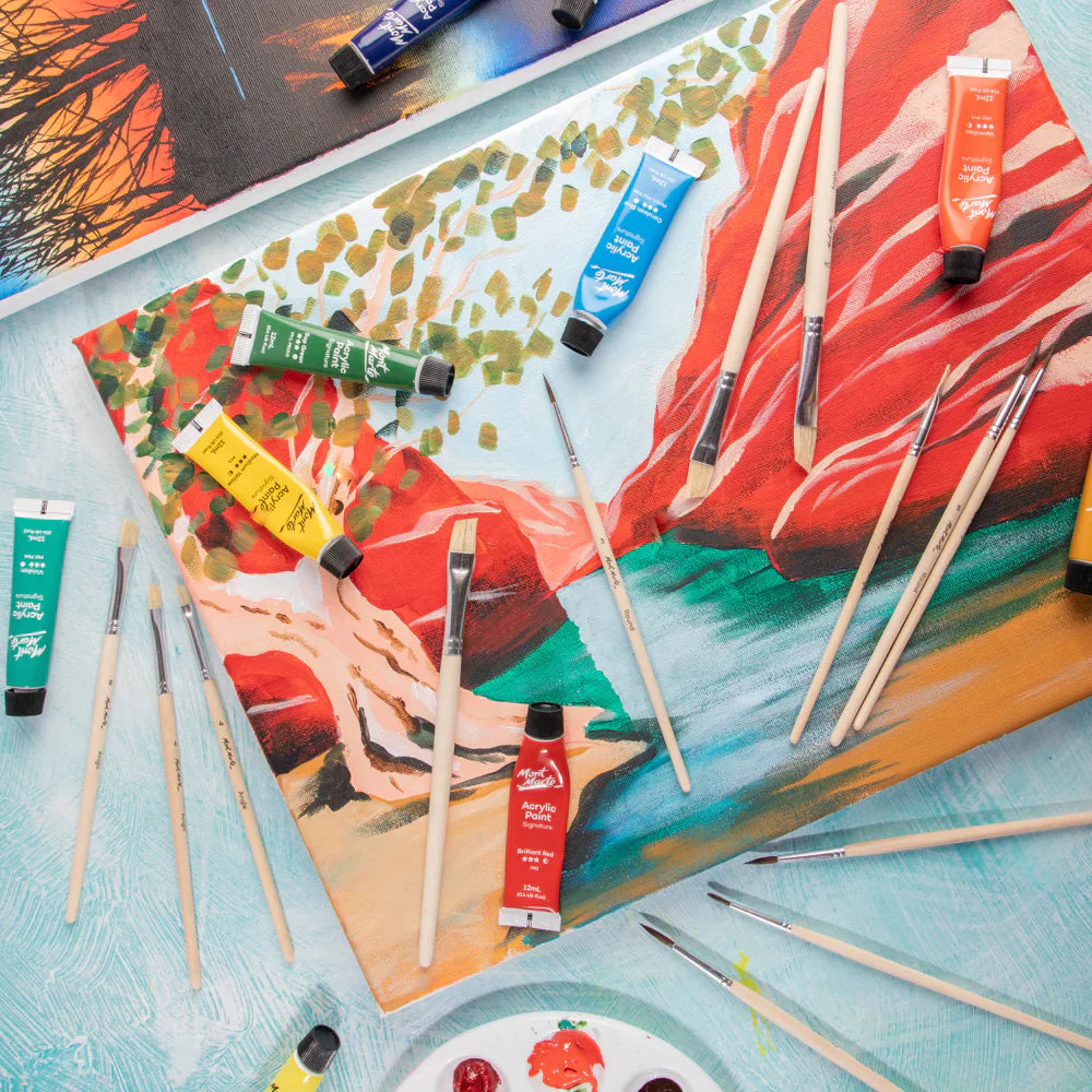 As a passionate advocate of this product, I want to share with you the Mont Marte Discovery Natural Hair Combo Brush Set 13Pc. Perfect for beginners and building a brush collection, this set includes a mix of 13 round and angle paint brushes that are ideal for creating thick to medium or angled, broad, and fine strokes.