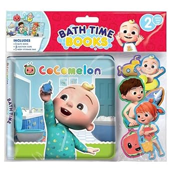 Moonbug Cocomelon Bath Time Books (Eva Bag) With Suction Cups And Mesh Bag