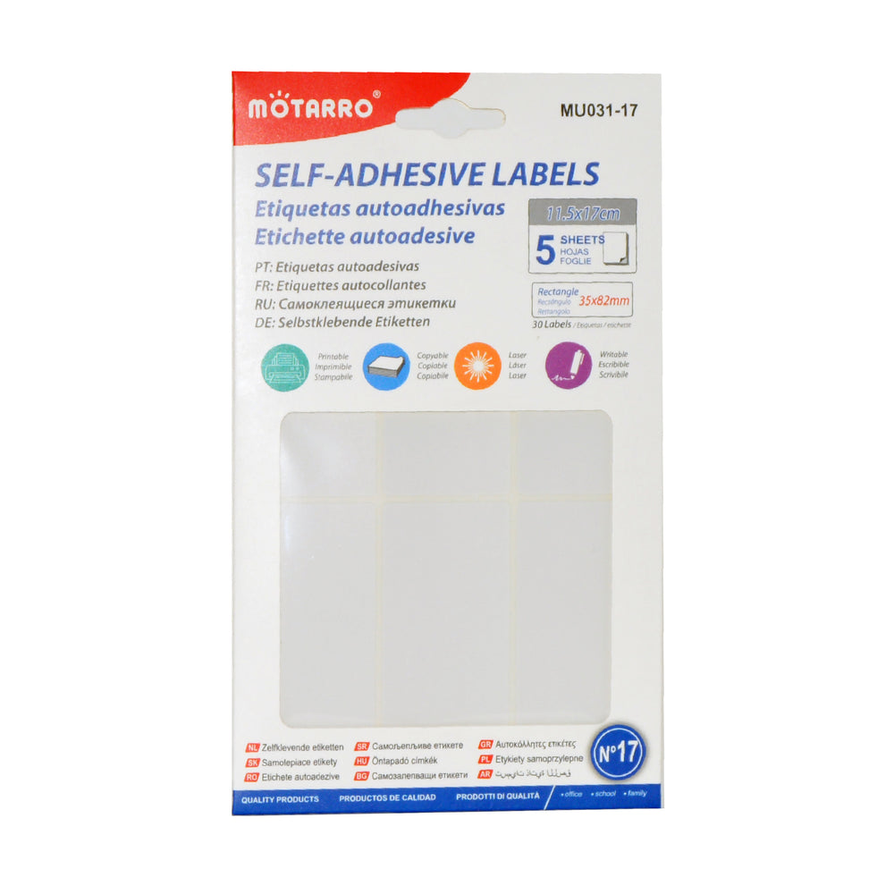 Organize, decorate, and personalize with Motarro Self-Adhesive Labels, versatile 11.5x17 cm (4.5x6.7 inch) rectangular stickers designed for seamless printing and everyday use. This pack of 100 acid-free, matte white sheets adheres smoothly to glass, plastic, paper, metal, and wood—ideal for labeling jars, filing folders, addressing envelopes, product packaging, or DIY crafts like scrapbooking and gift wrapping. Compatible with all major inkjet and laser printers, the waterproof, smudge-proof surface ensures vibrant, professional results that won't bleed or fade. Easy-peel backing for quick application, and removable/repositionable adhesive prevents residue on most surfaces.