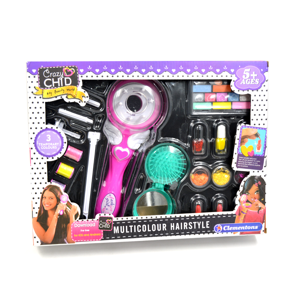 Create fun hairstyles with this multicolor set featuring clips, brushes, and accessories for pretend salon play.