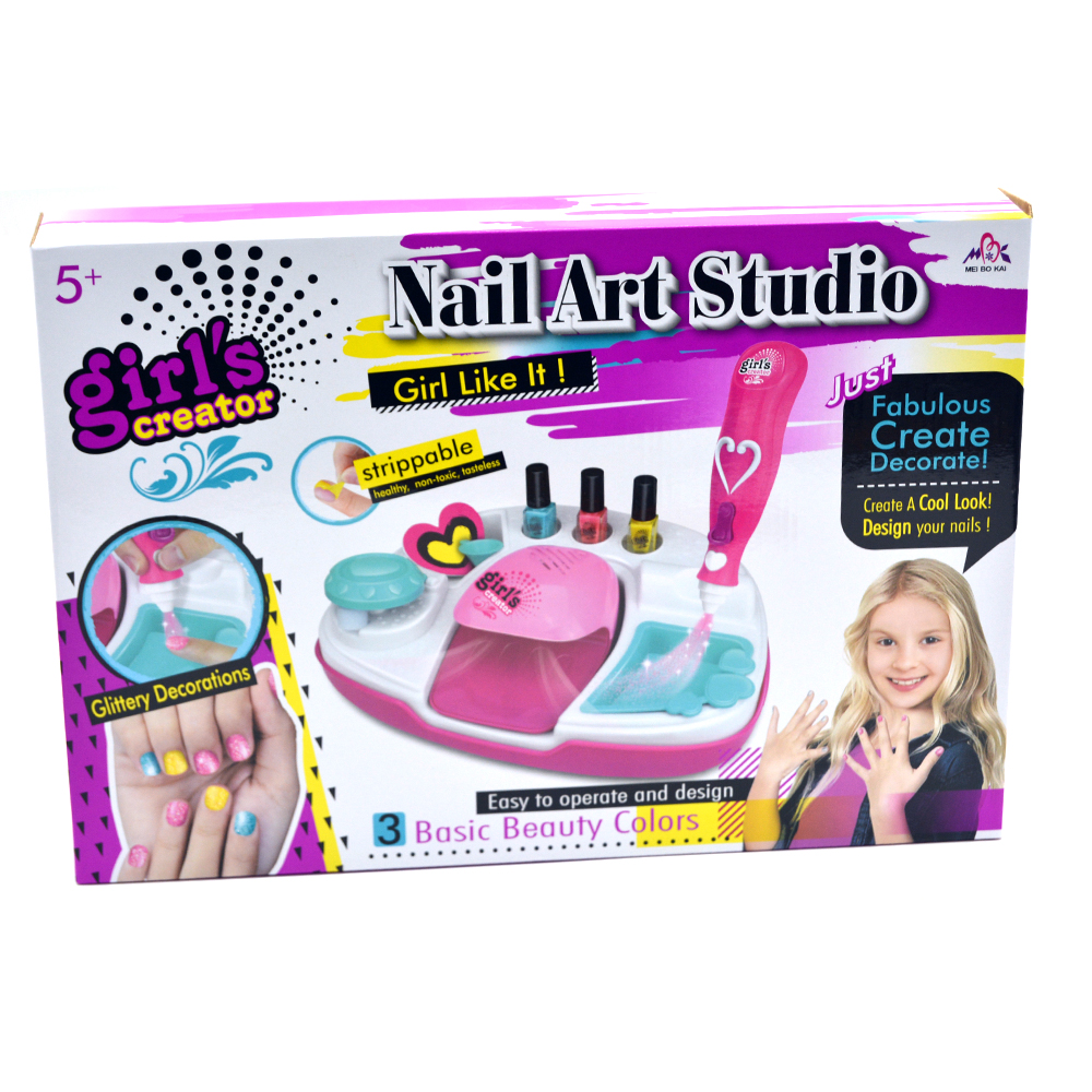 Kids can express their creativity with this 3-color nail art studio – includes tools for DIY nail fun.