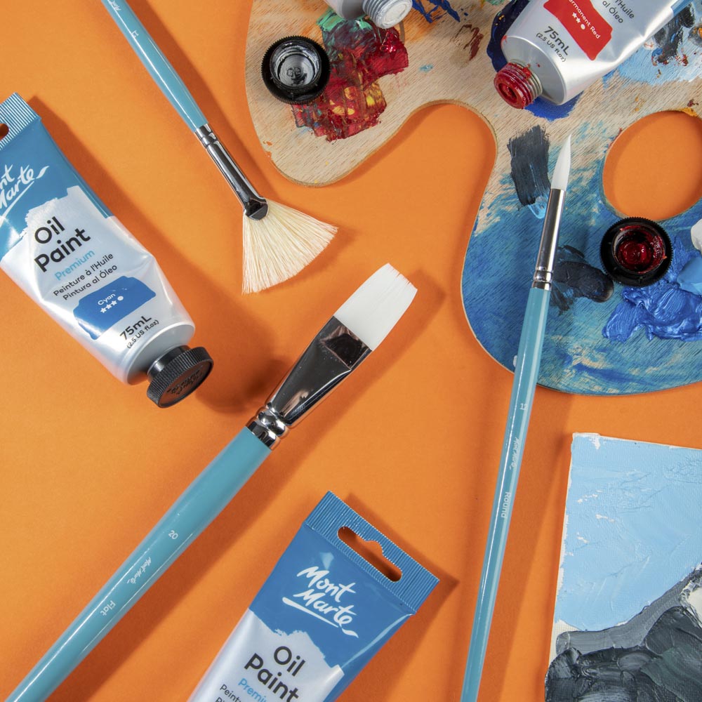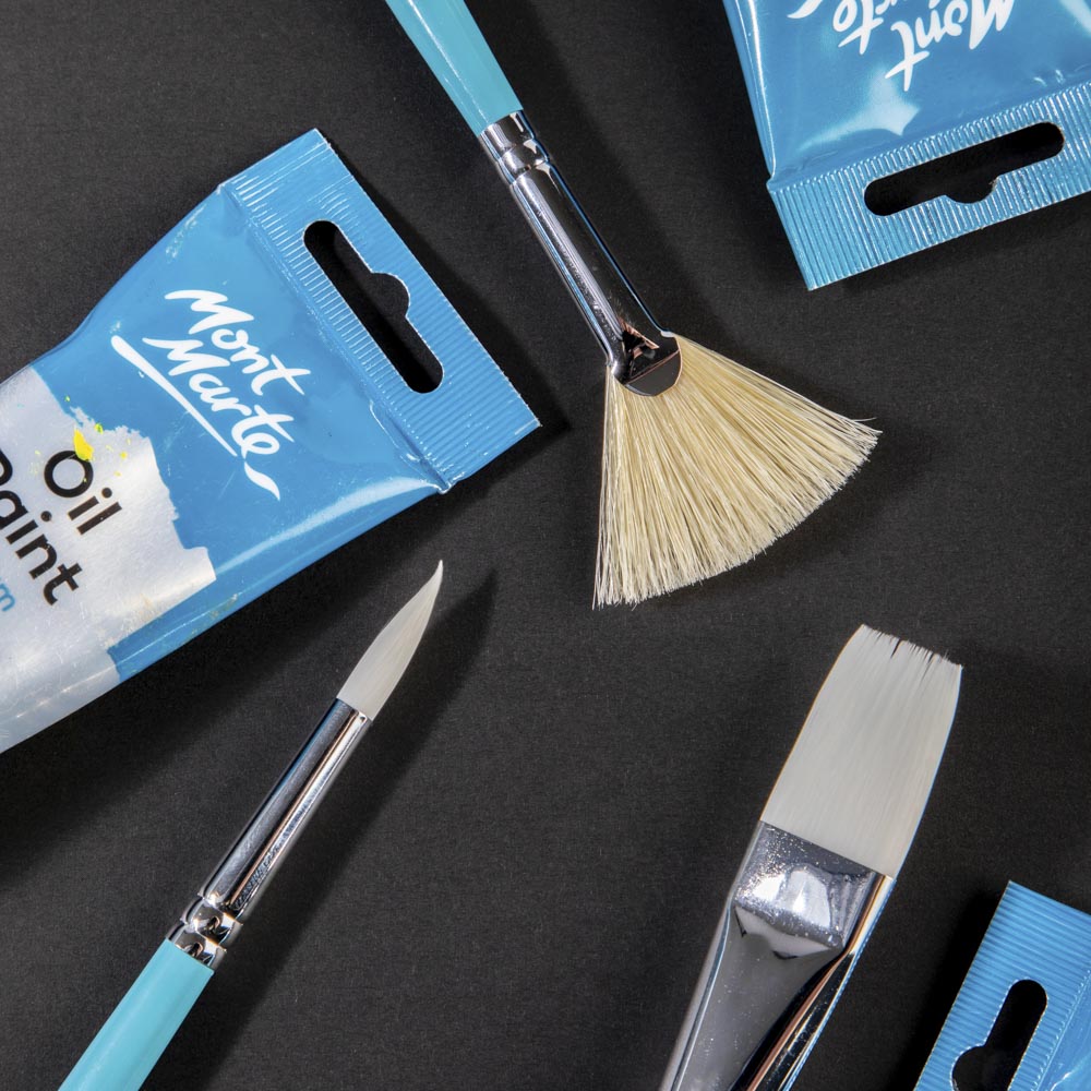 Discover the professional quality of Mont Marte Oil Brush Set Premium 3Pc. This set is perfect for beginners, featuring durable 2-tone 0.1mm Taklon bristles that can handle oil paints and heavy-bodied acrylics.
