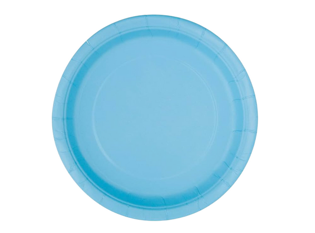 Vibrant blue 7" plates (6 pieces) for kids' parties and themed celebrations.