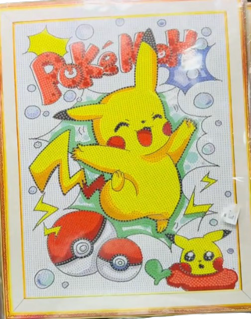 A 40x50cm diamond painting set featuring Pikachu, the iconic Pokémon character. This set includes rhinestones and a pre-printed canvas, allowing users to create a sparkling, detailed artwork of Pikachu. Ideal for fans of Pokémon, this crafting activity combines relaxation with creativity, making it a fun and rewarding project.
