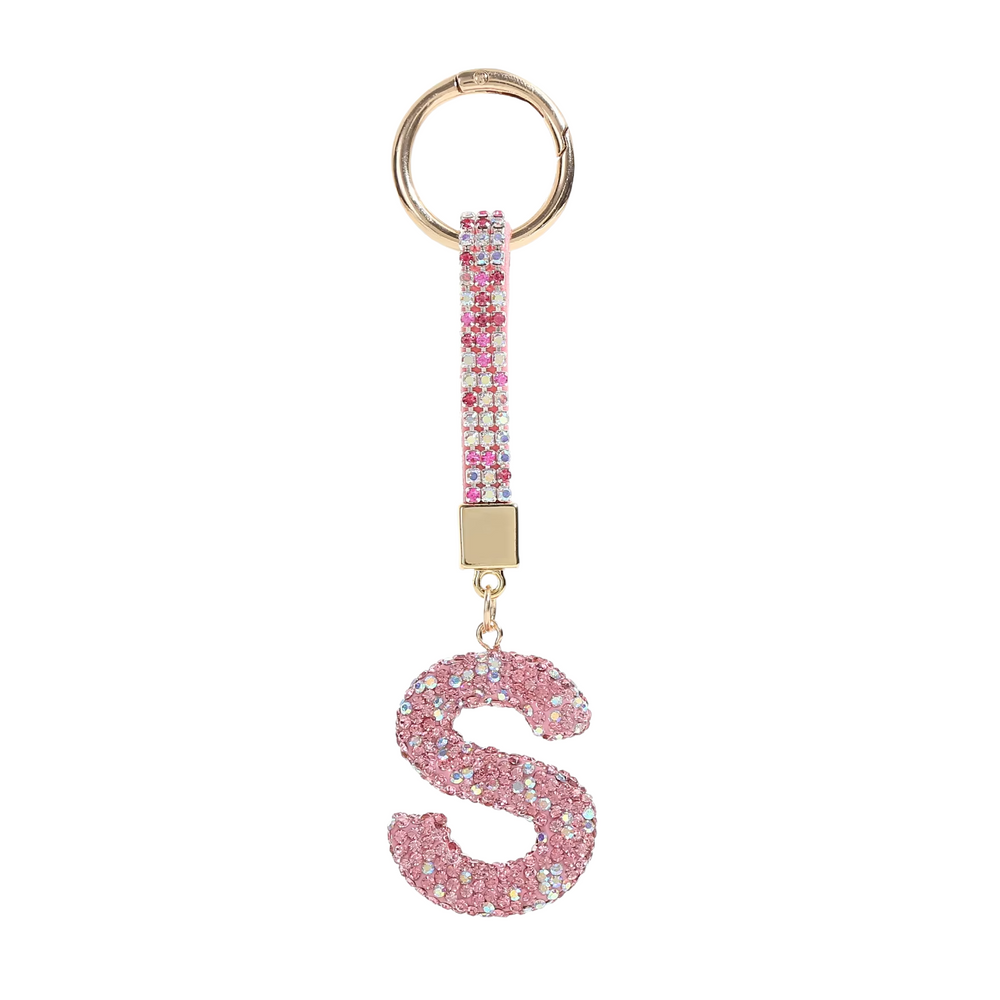Stylish Pink Rhinestone Letter S Keychain for a chic touch.