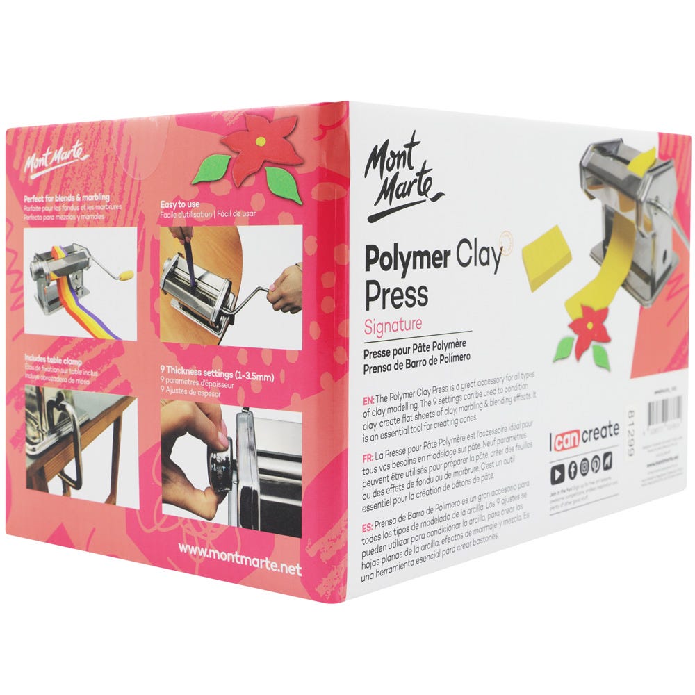 Discover the endless possibilities of clay modeling with our versatile clay press. Effortlessly create stunning marbling and blending effects with 9 customizable settings. Perfect for all types of clay modeling, this tool is also easy to clean and comes with a reliable table clamp. Take your creations to the next level with the Mont Marte Signature Polymer Clay Press.