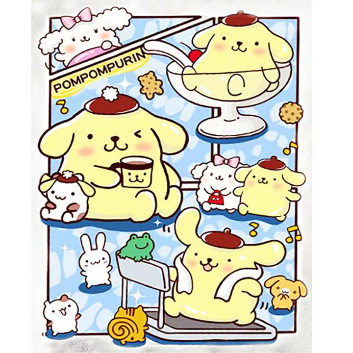 A 40x50cm diamond painting kit featuring Pompompurin, a Sanrio character known for his sweet personality. This kit includes rhinestones and a pre-printed canvas to create a sparkling, colorful image of Pompompurin. Ideal for fans of Sanrio characters, this diamond painting set is a fun, creative activity for both beginners and seasoned crafters.