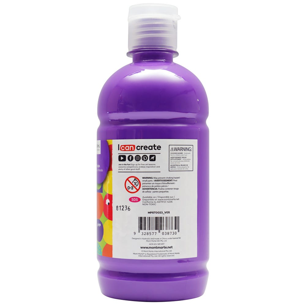 Mont Marte Poster Paint 500ml - Purple is backordered and will ship as soon as it is back in stock.