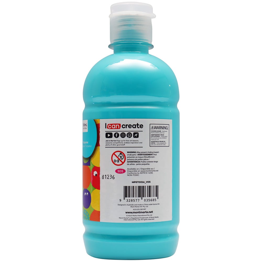Mont Marte Poster Paint 500ml - Turquoise is backordered and will ship as soon as it is back in stock.