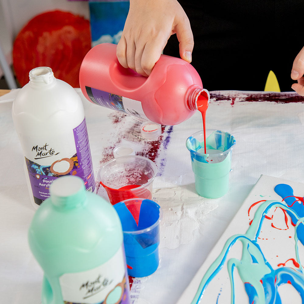Create stunning fluid artworks with our Pouring Acrylic Paint range. The 1 Litre (33.8oz) bottle is perfect for students or artists looking to create large scale artworks at an affordable price. There's no need for extra mediums as this paint is pre-mixed and ready to flow. Our pouring paint has great coverage and smooth flow so get ready to see some amazing effects come to life on your canvas!Create stunning fluid artworks with our Pouring Acrylic Paint range. The 1 Litre (33.8oz) bottle is perfect for students or artists looking to create large scale artworks at an affordable price. There's no need for extra mediums as this paint is pre-mixed and ready to flow. Our pouring paint has great coverage and smooth flow so get ready to see some amazing effects come to life on your canvas!