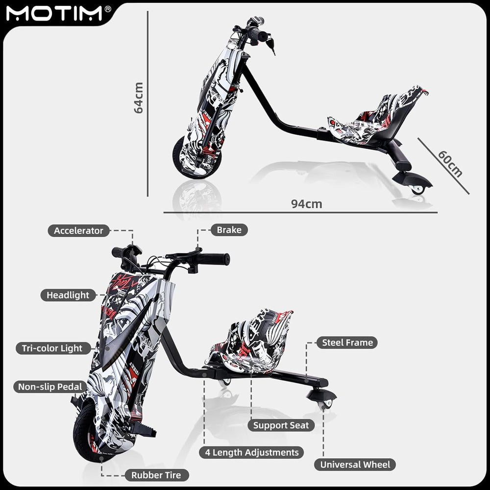 Unleash the thrill of speed and precision with the Pro Ride Drift Scooter 36V in sleek white. Designed for thrill-seekers and drift enthusiasts, this electric scooter combines high-performance power, smooth drifting action, and a stylish design. Perfect for teens and adults, it delivers an exciting riding experience with a powerful motor, drift capabilities, and lasting battery life.