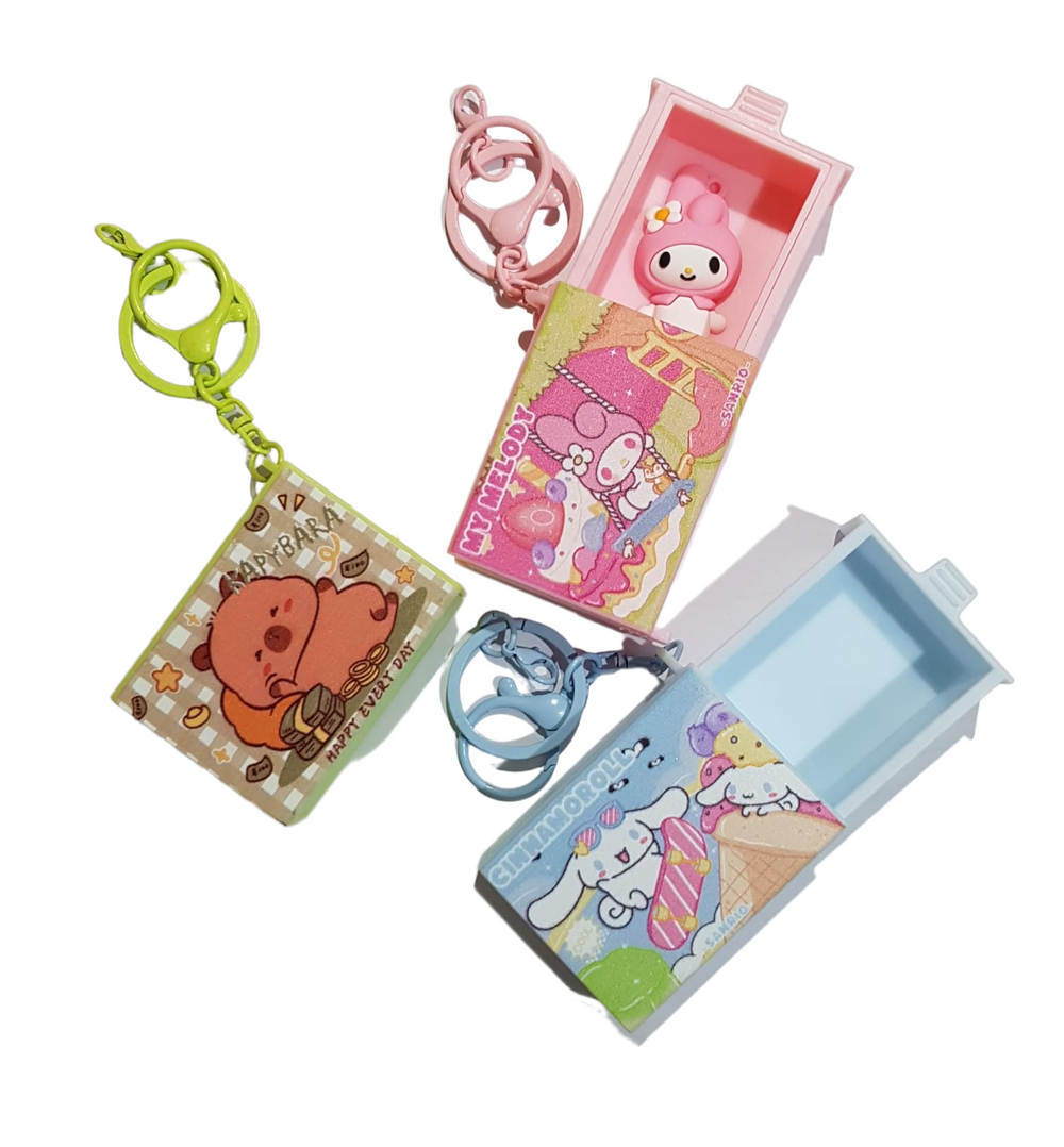 A mystery box-style Sanrio keychain featuring popular characters like Hello Kitty, Kuromi, and Cinnamoroll. Each set includes four surprises. Fun to collect, trade, and gift!
