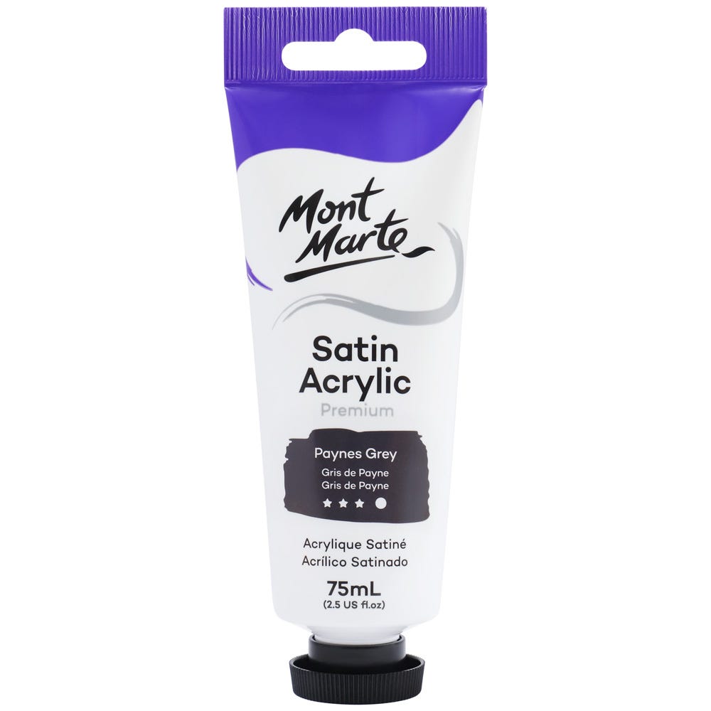 Mont Marte Satin Acrylic Paint Premium 75Ml (2.5 Us Fl.Oz) Tube - Paynes Grey